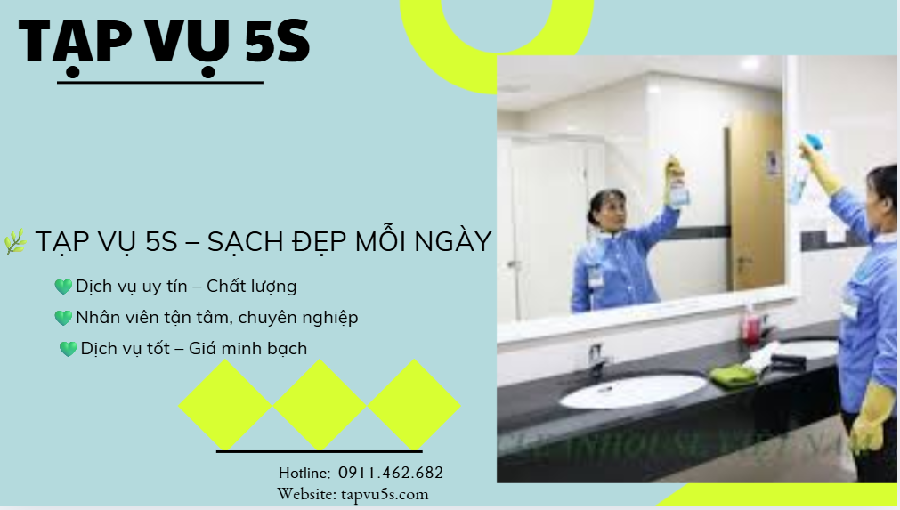 Với phương châm: CHUYÊN NGHIỆP – UY TÍN – TẬN TÂM – Công ty Tạp vụ 5S cam kết mang đến cho khách hàng dịch vụ cung cấp tạp vụ vệ sinh Nghệ An tốt nhất.